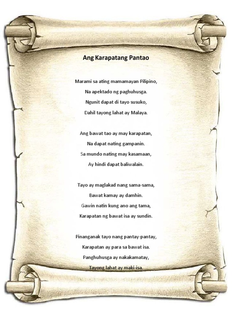 Lyrics for Karapatan by Bing Rodrigo. Bawat Bata Lyrics Chorus Ang bawat bata sa ating mundo Ay may pangalan may karapatan Tumatanda ngunit bata pa rin Ang bawat tao sa ating mundo Verse 1 Hayaan mong maglaro. Use it for writing poetry composing lyrics for your song or coming up with rap verses.